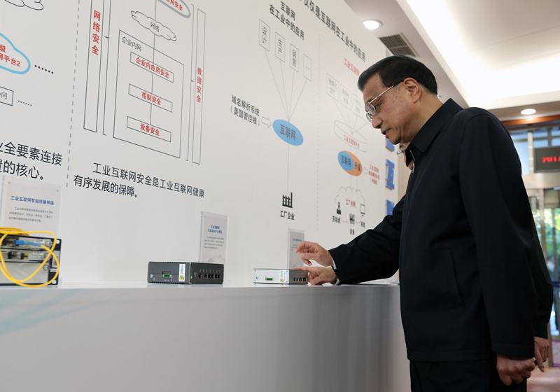 李克强10月30日主持召开国务院常务会议之前,参观工业互联网展览。