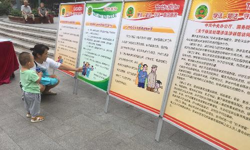 6月22日“宣传日”当天,我区在拱辰街道设立主会场1个,其他乡镇、街道办事处设立分会场23个,与主会场同步,开展形式各样的宣传活动。区信访办党组书记、主任刘守祥到场指导,发放宣传册、宣传单,解答群众咨询,参加活动与群众互动。本次活动,通过群众喜闻乐见的互动宣传,以悬挂宣传横幅、设立漫画展板、发放宣传册、宣传单、现场答疑等方式进行。同时,活动还向群众具体介绍了我区信访微信公众号、政务头条号、网上信访投诉办理渠道以及群众来信来访受理办理流程等,进一步提高广大群众尊纪守法的自觉性和依法信访的观念。